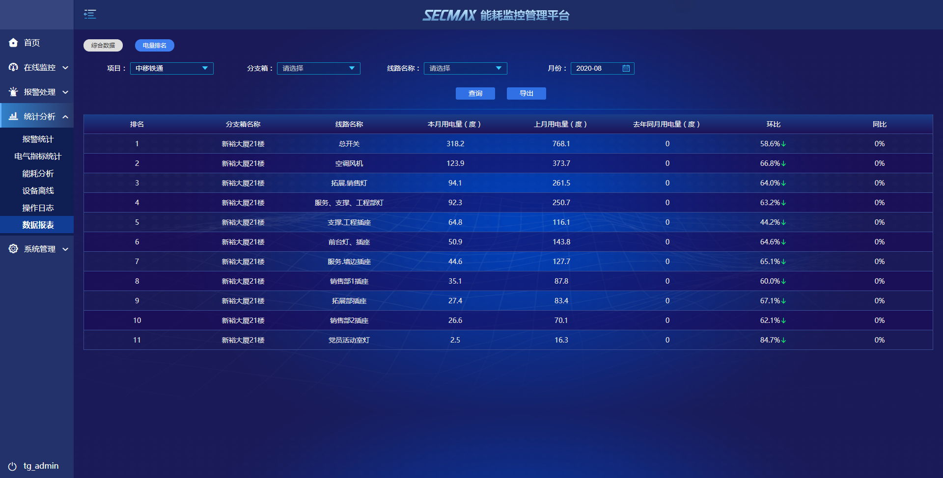 提供設(shè)備能耗數(shù)據(jù),形成報(bào)表匯總分析