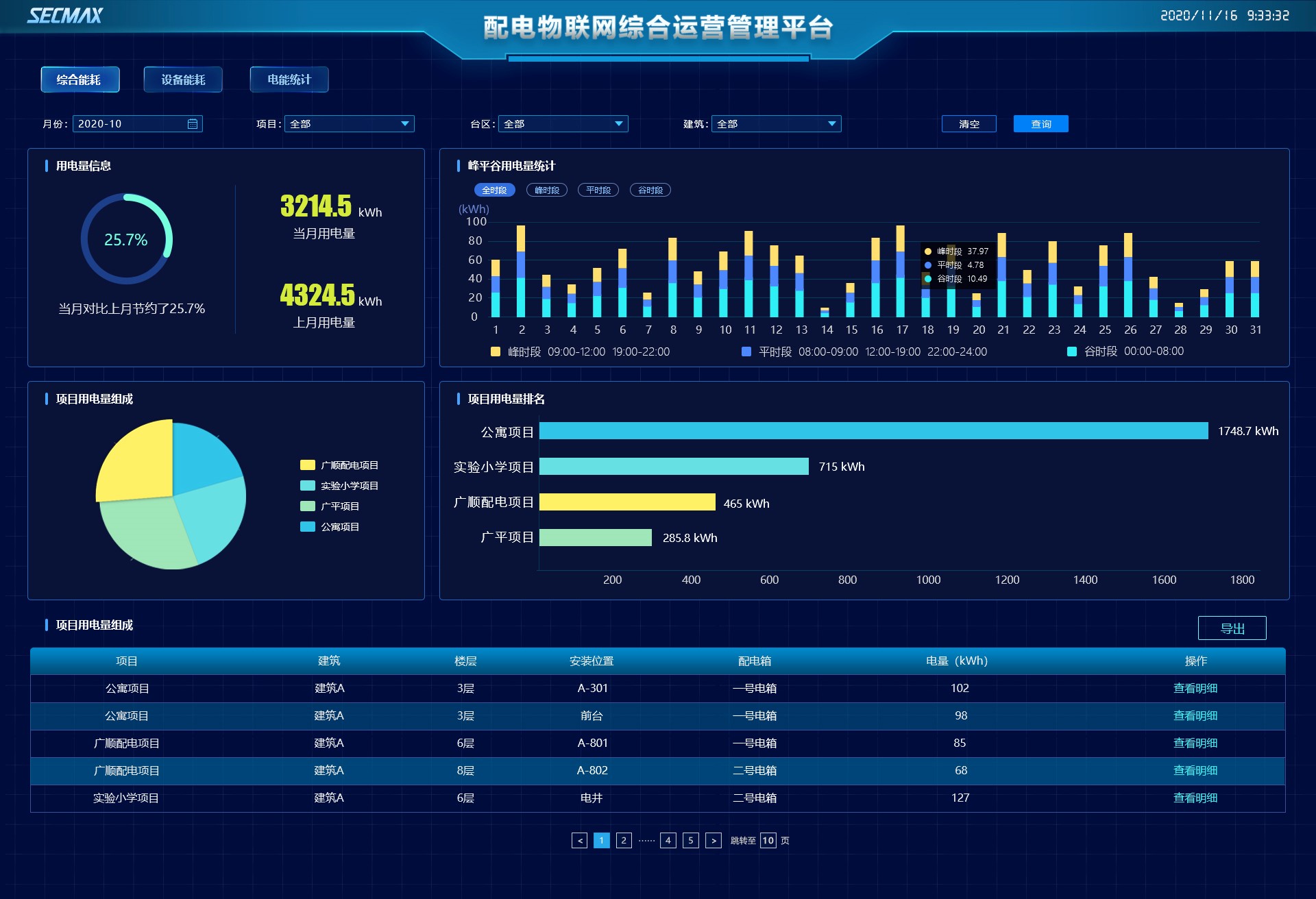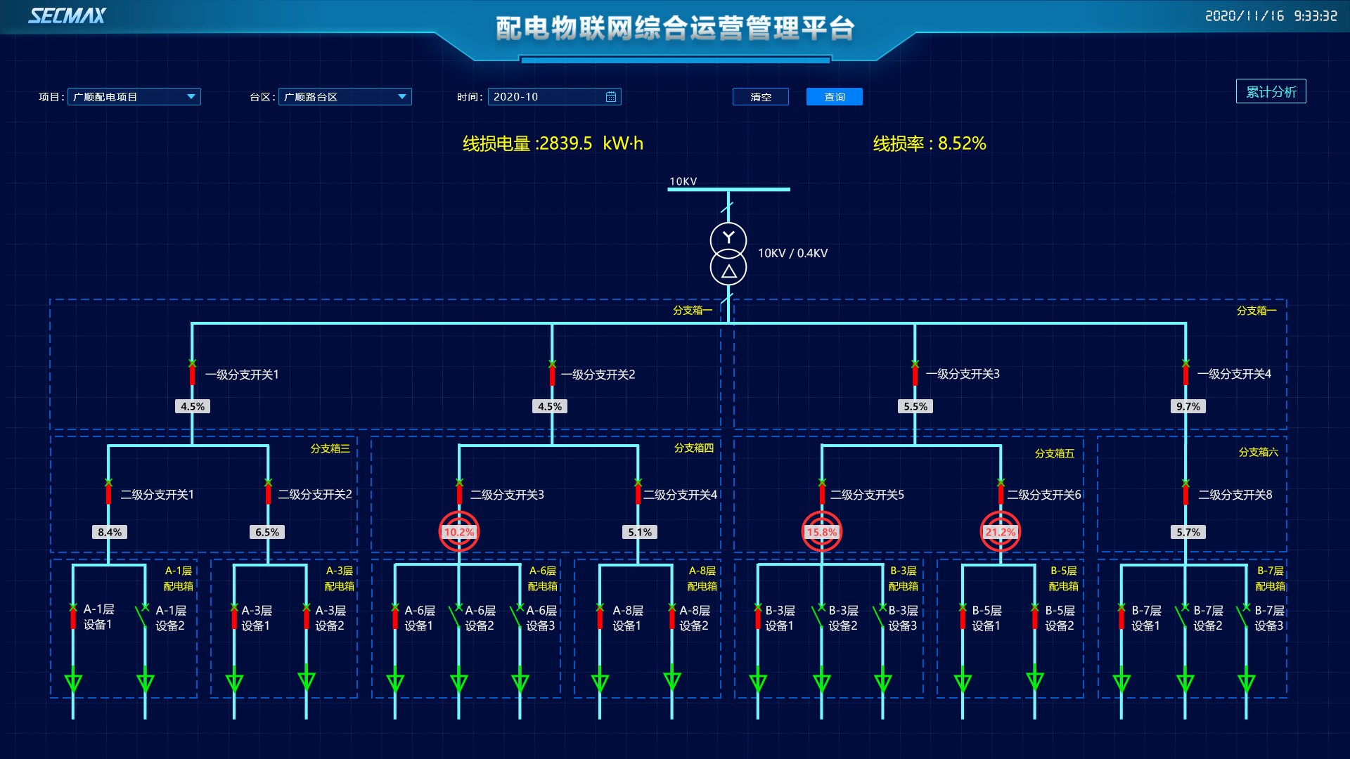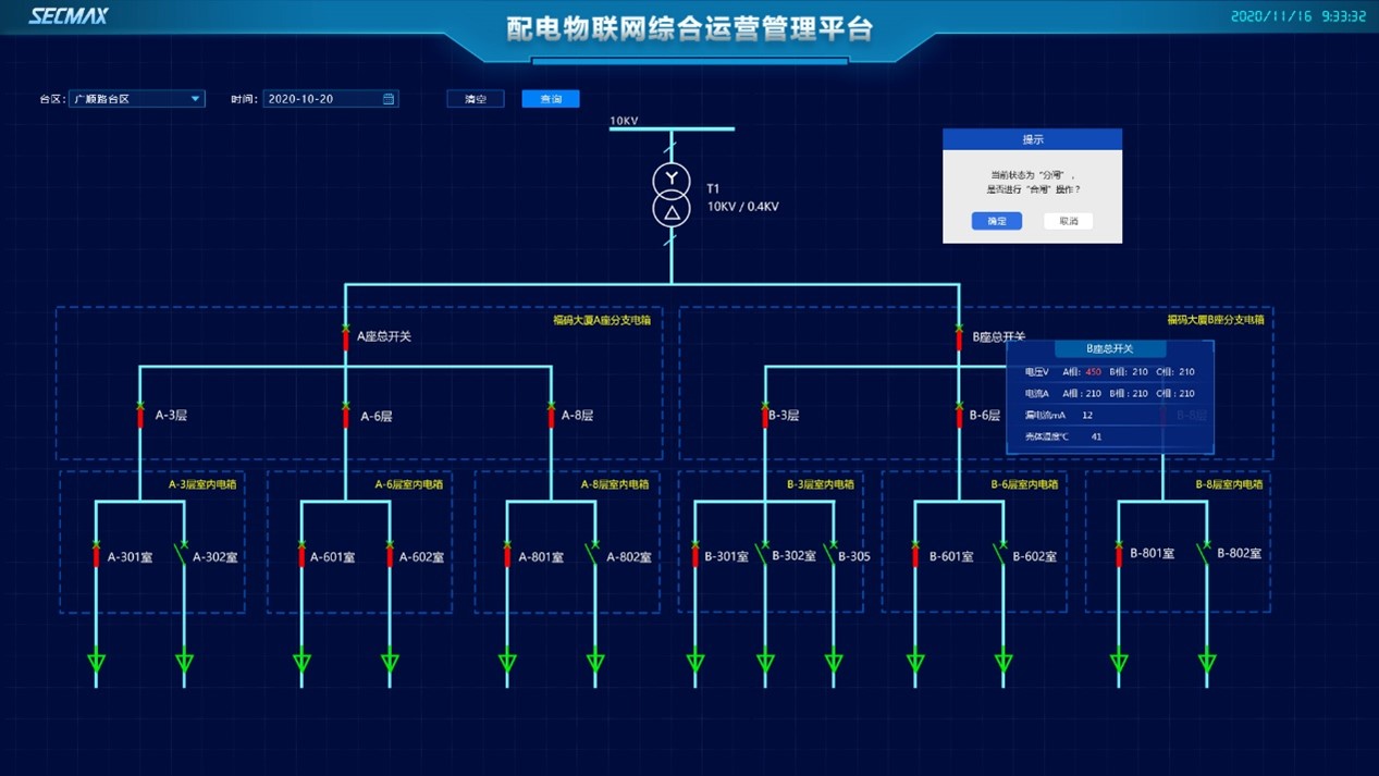 SECMAX 電力物聯(lián)網(wǎng)綜合運營管理平臺融合了物聯(lián)網(wǎng)、云計算、大數(shù)據(jù)等技術(shù),通過 SECMAX 系列數(shù)字?jǐn)嗦菲鲗崿F(xiàn)了對用 電線路電氣指標(biāo)的精準(zhǔn)感知與數(shù)據(jù)的實時采集。