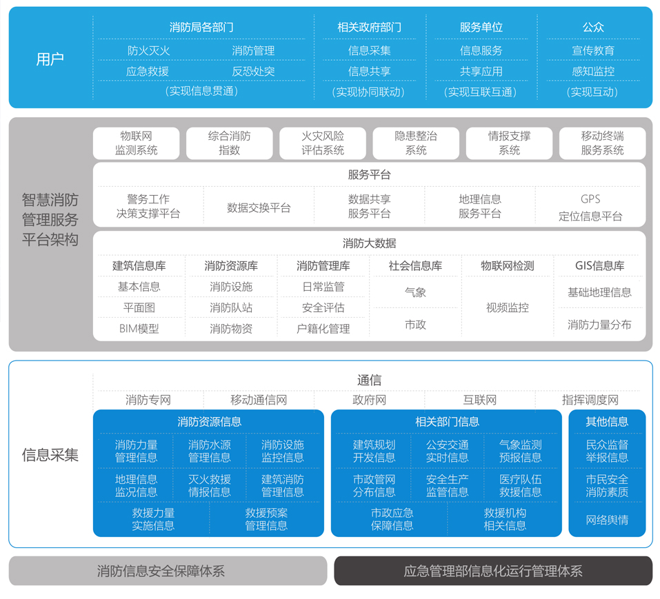 提升城市預警能力、社會火災防控能力、部隊滅火應急救援能力和隊伍管理水平。掌握涉消輿情信息,擴大社會公眾參與程度,實現消防工作的群防群治。降低人員成本,防患于未然,減少消防安全事故的發生,降低火災經濟損失。